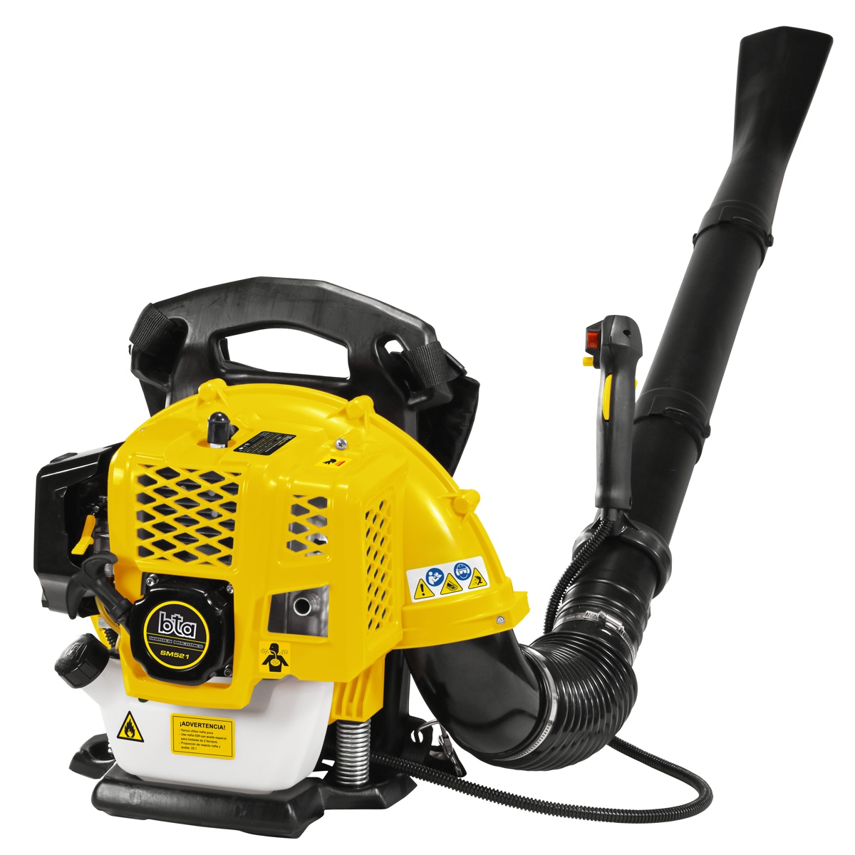Soplador a gasolina con velocidad de 280 km/h y un volumen de aire de 1265 m3/h.