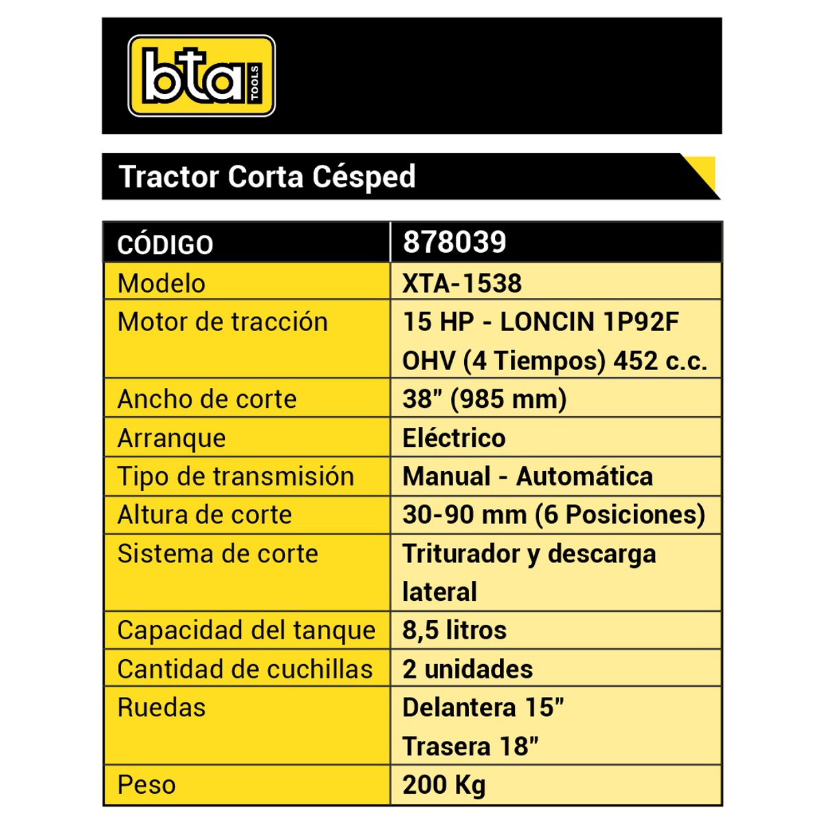 Tractor Cortacesped 15 Hp 452cc American Cut