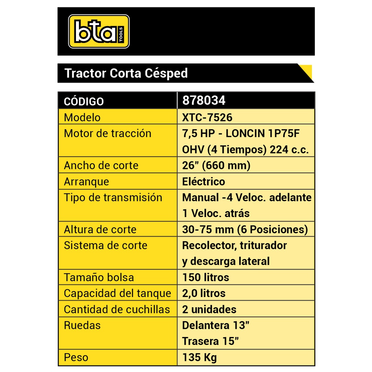 – Equipado con ruedas delanteras de 13 y traseras de 15 brindando una excelente tracción